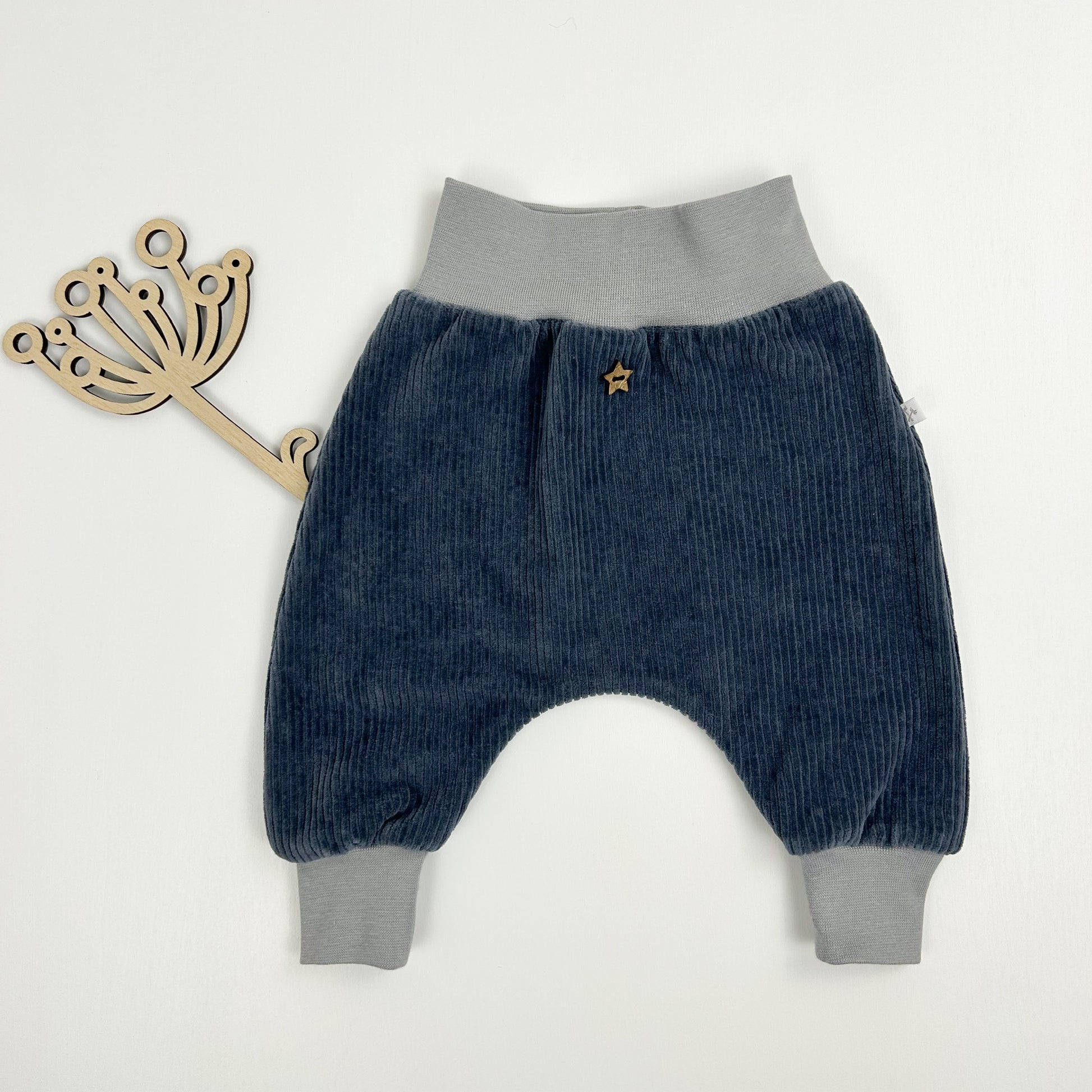 Der Holzknopf in Sternform macht die Hose zu einem echten Hingucker.