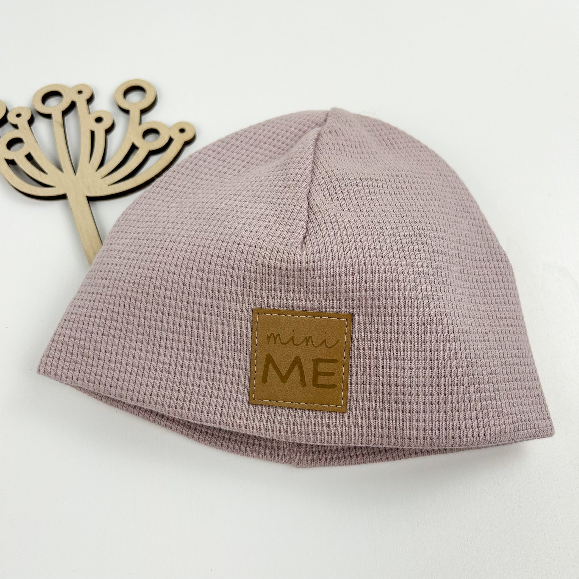 Waffelstrick Mütze Rosa mit Label mini Me